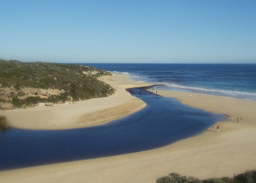 Where the Moore River and the Indian Ocean meet at Guilderton, Mid West, W.A.