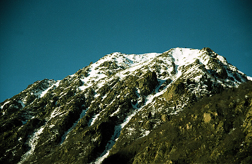 Not all peaks are covered completely in snow, near Andorra, Europe.