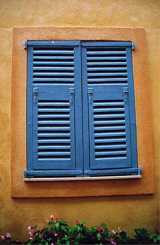 Shutters in the old town Antibes, Cote d'Azur, France.