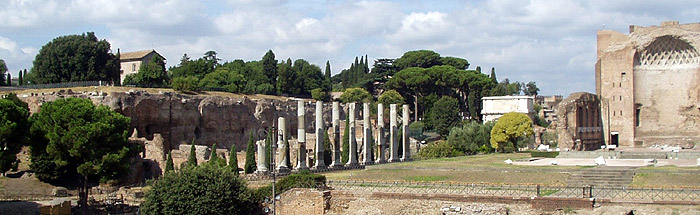 View of the Roman Forum area from the Colosseum, Italy.