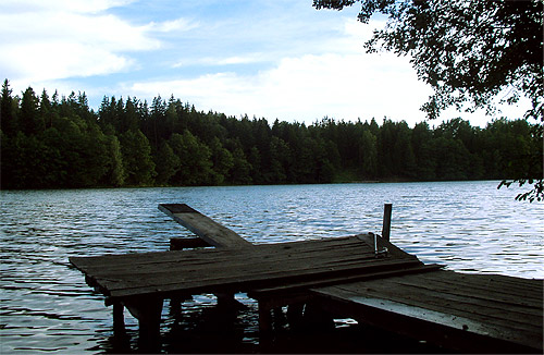 Marzenna's Parent's jetty with diving board, Lake Supienie, Poland.