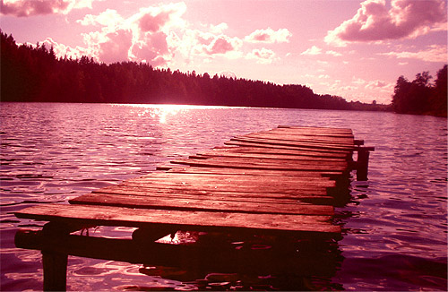 Rickety old jetty, Lake Supienie, Poland.