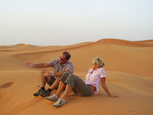 Jeremy explaining to Marzena which way was home, Dubai, UAE.