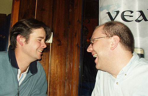 James and Guy share a moment over a beer in Oxford.