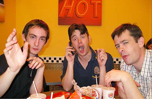 Ed, James and the stag - David after partying all day and night, London.