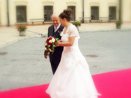 Marzena's father takes over escorting the bride, Dom Poloni, Poland.