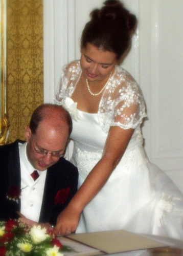 Marzena shows Guy where to sign, Don Poloni, Poland.