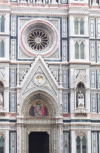 A modern façade in the style of the Gothic Revival, Florence, Italy.