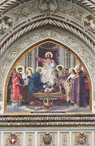 Above the "gates of paradise" entrance of the Duomo, Florence.