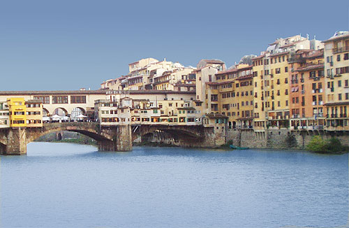 Ponte Vecchio Bridge is the most famous bridge of Florence built in 1345, Italy.