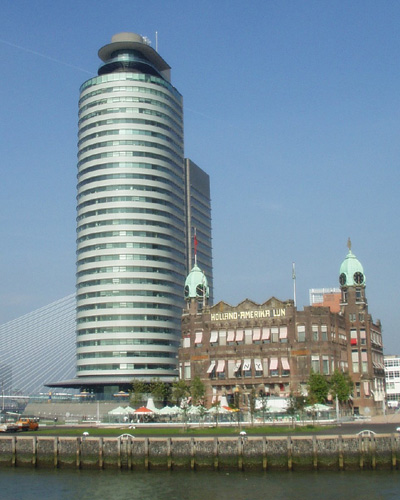 World Port building (new) next to the old New York Hotel, Rotterdam, Netherlands.