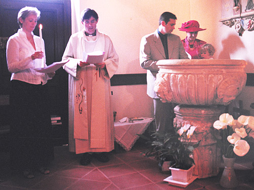 The priest reading the baptism reading.