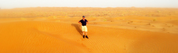 James lost in the desert, Dubai, UAE.