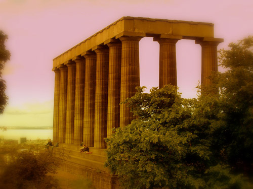 Sunset at the Monument, Calton Hill, Edinburgh, Scotland.
